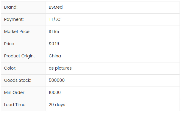 BAI SHUN medical is a professional supplier of medical product development, covering thousand of products in the medical field. We have our own factory which established in 1988 which specialized in the production of medical absorbent cotton series product,gauze product, non woven products, all kinds of plasters, bandages, tapes and the other medical products. And we are also developing more rapid test,blood pressure monitor,blood glucose,Injection Syring,wheelchair,walker,and so on.