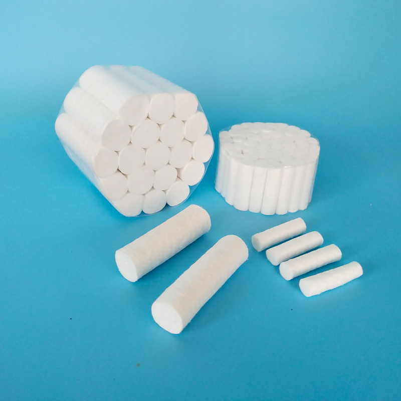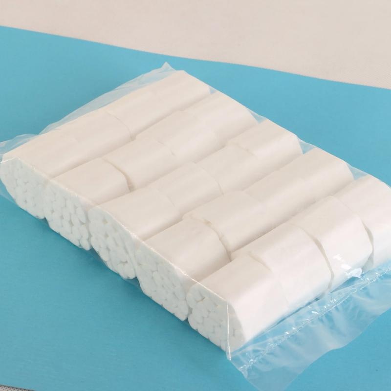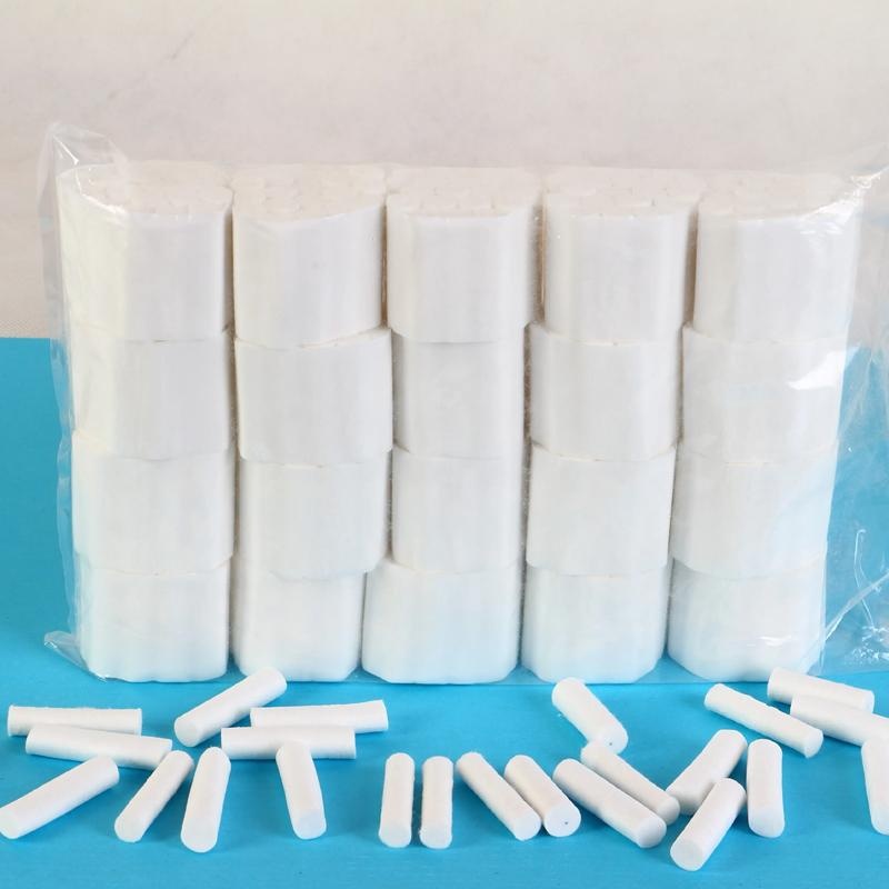 Dental cotton roll is welcomed in dental hospital, applicable to dental and stomatological wound cleaning.